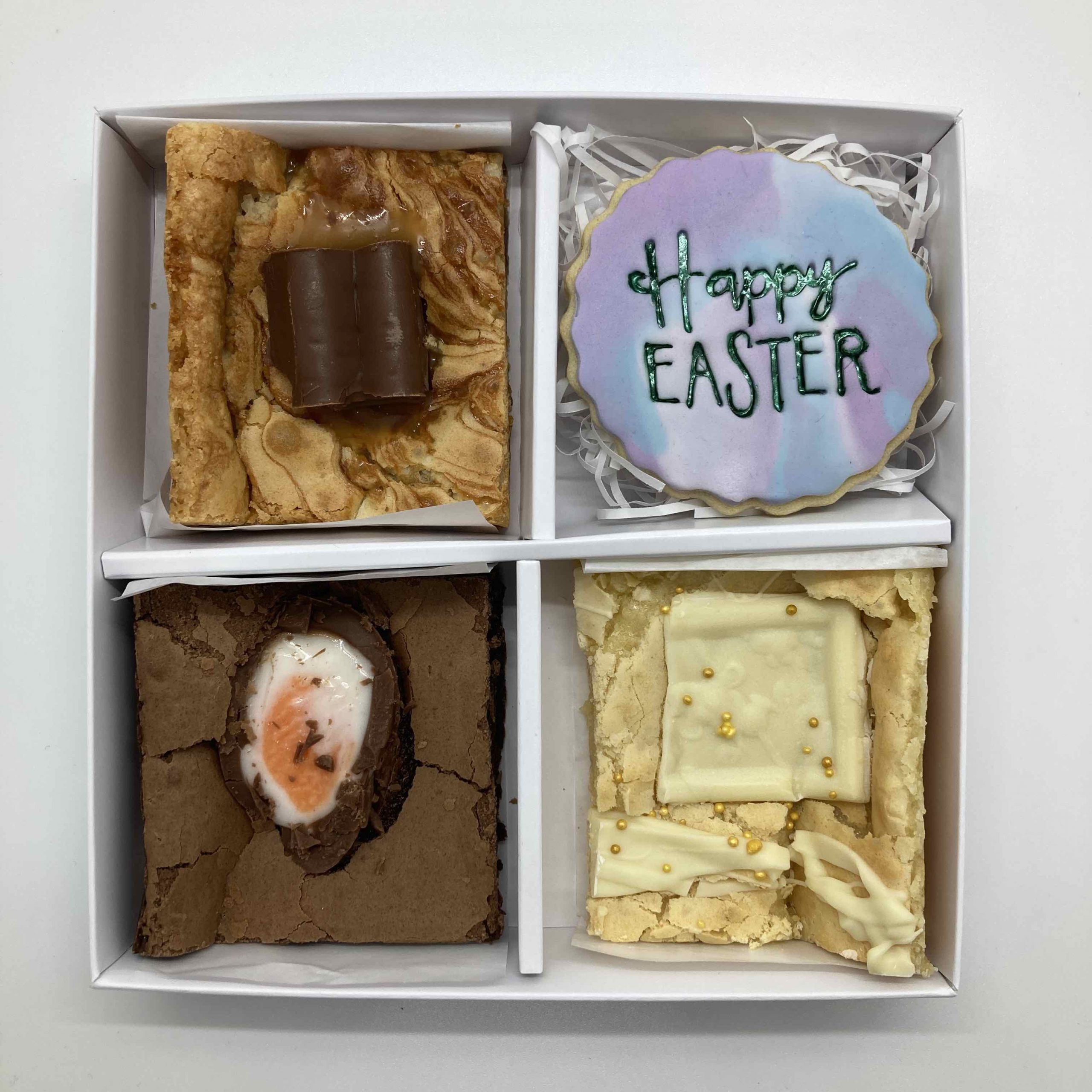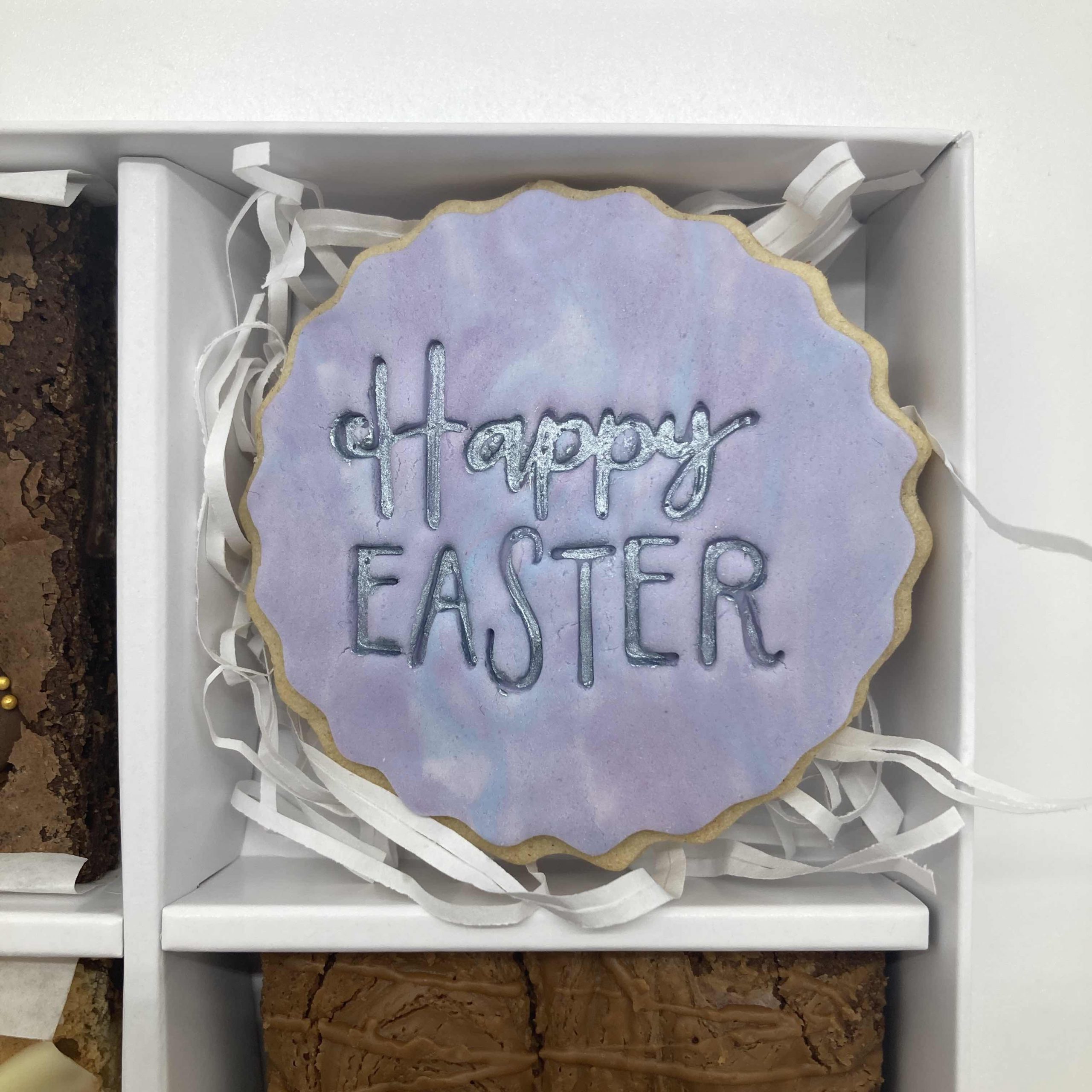 You know the drill by now! This box comes with a beautiful iced ‘Happy Easter’ sugar cookie, plus three brownies or blondies so your lucky recipient gets a chocolatey treat as well. Sugar cookies are made to order and can take time so please make sure you allow 2-3 days for dispatch and order in plenty of time. You can also add a note for me to put in the box with your gift at checkout.