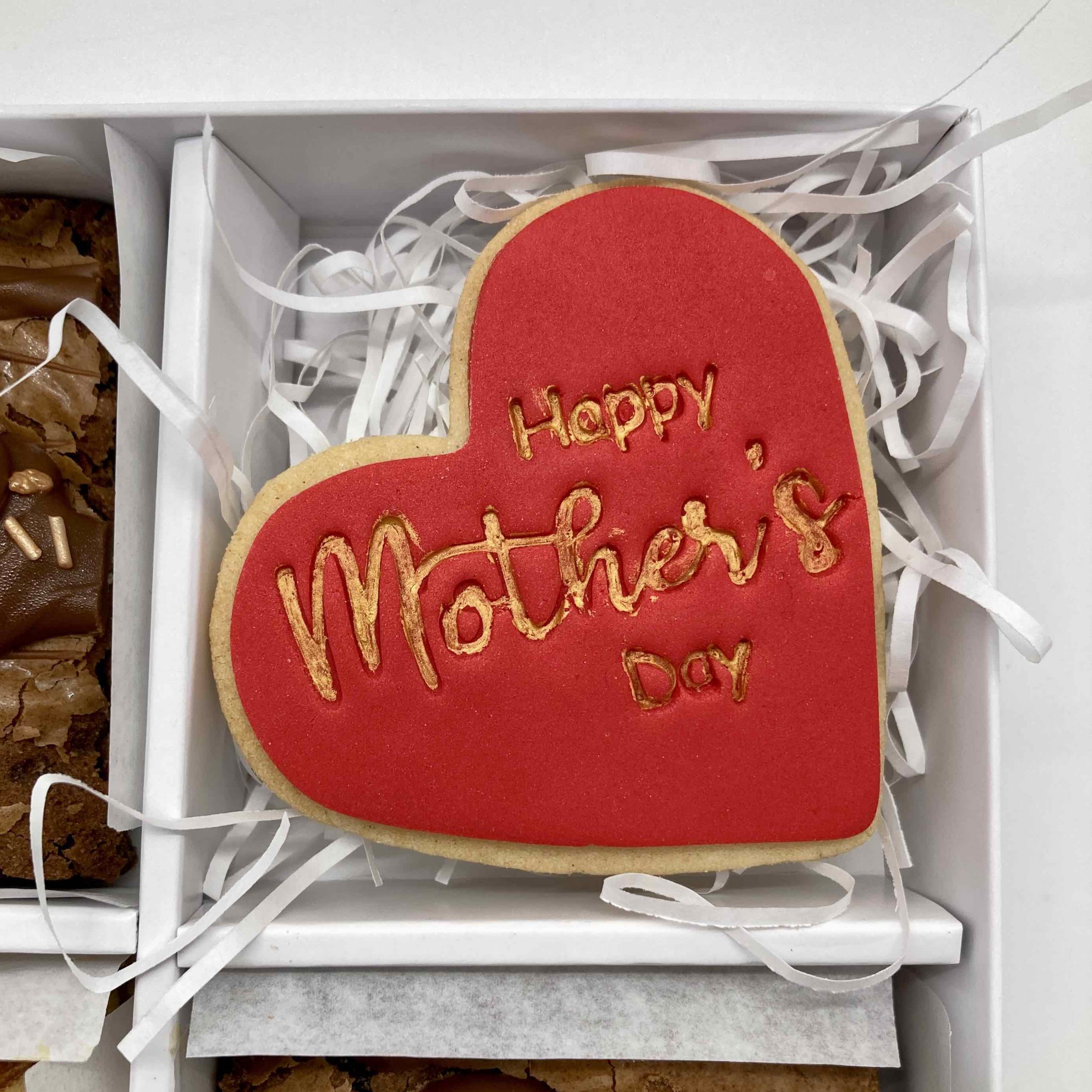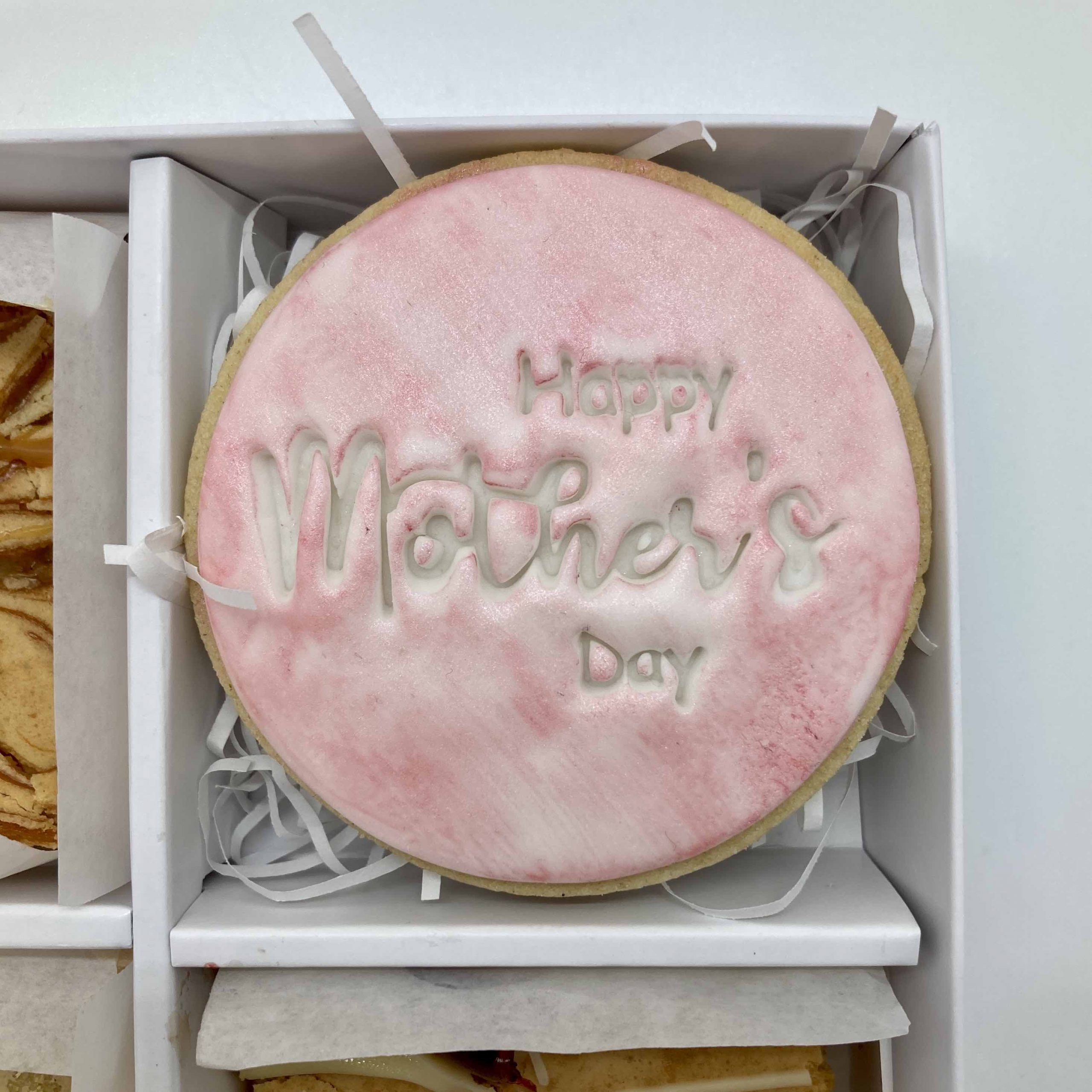 We don’t all suddenly start loving pink and pastels the moment our tiny offsprings arrive, so this year I’ve added an option to the usual ‘chocolate treats plus cute sugar cookie’ selection… As well as the heart and circle biscuit option (because some mums DO like those!) you can now select ‘other’ when choosing your box, tell me what style of iced biscuit your mum would like best in the ‘notes’ box at checkout, and leave the rest up to me!