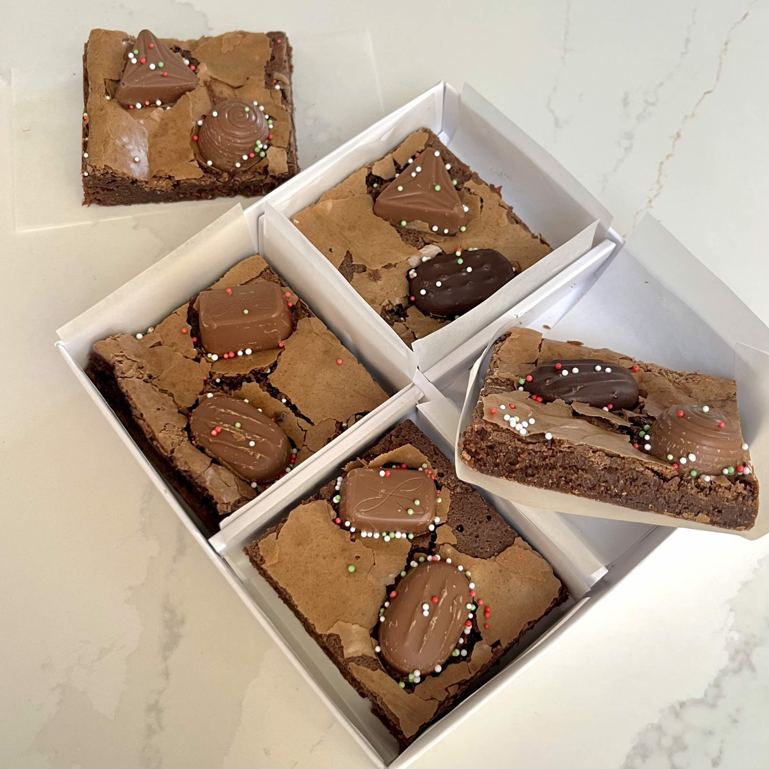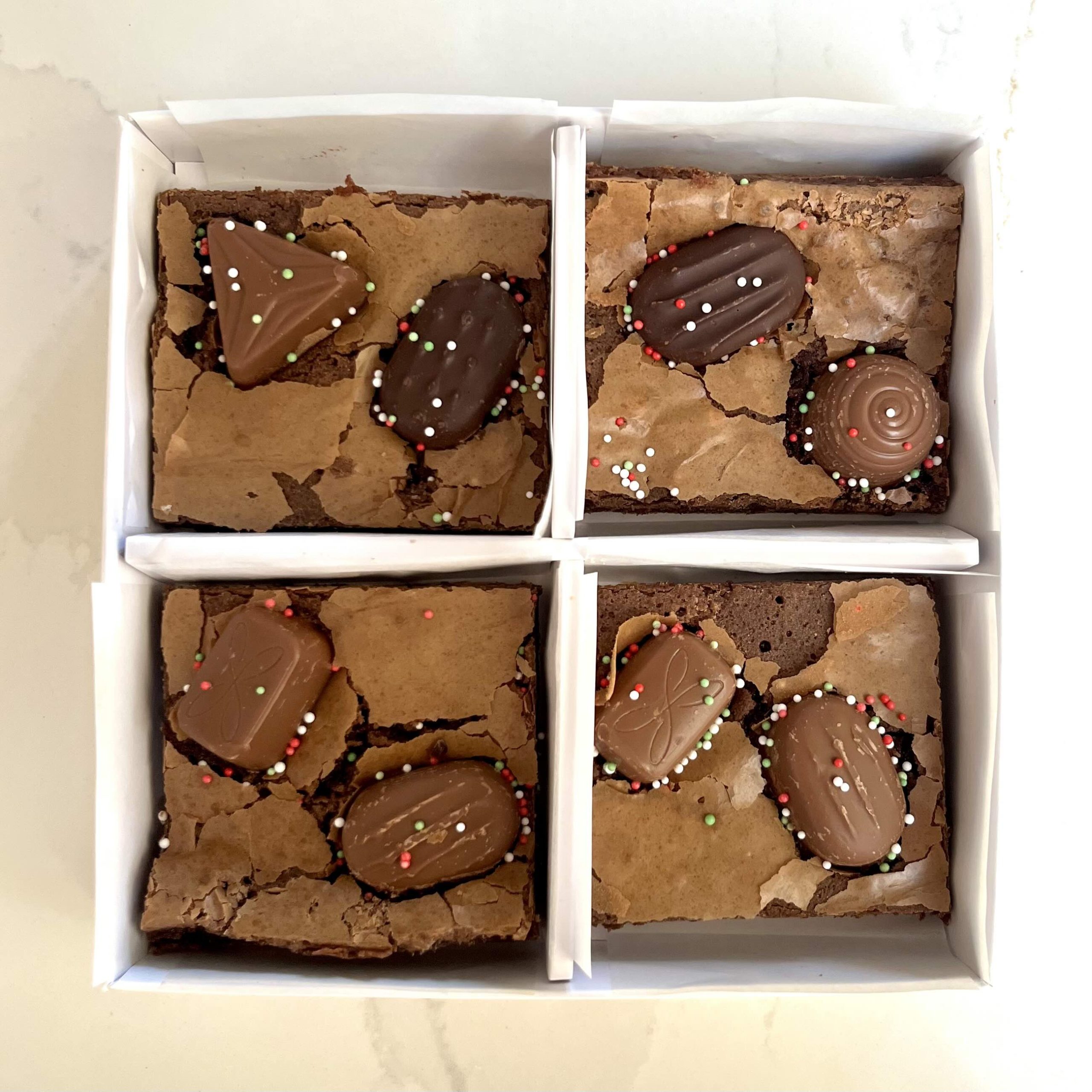 Fudgy fresh brownies topped with delicious Quality Street chocolates.