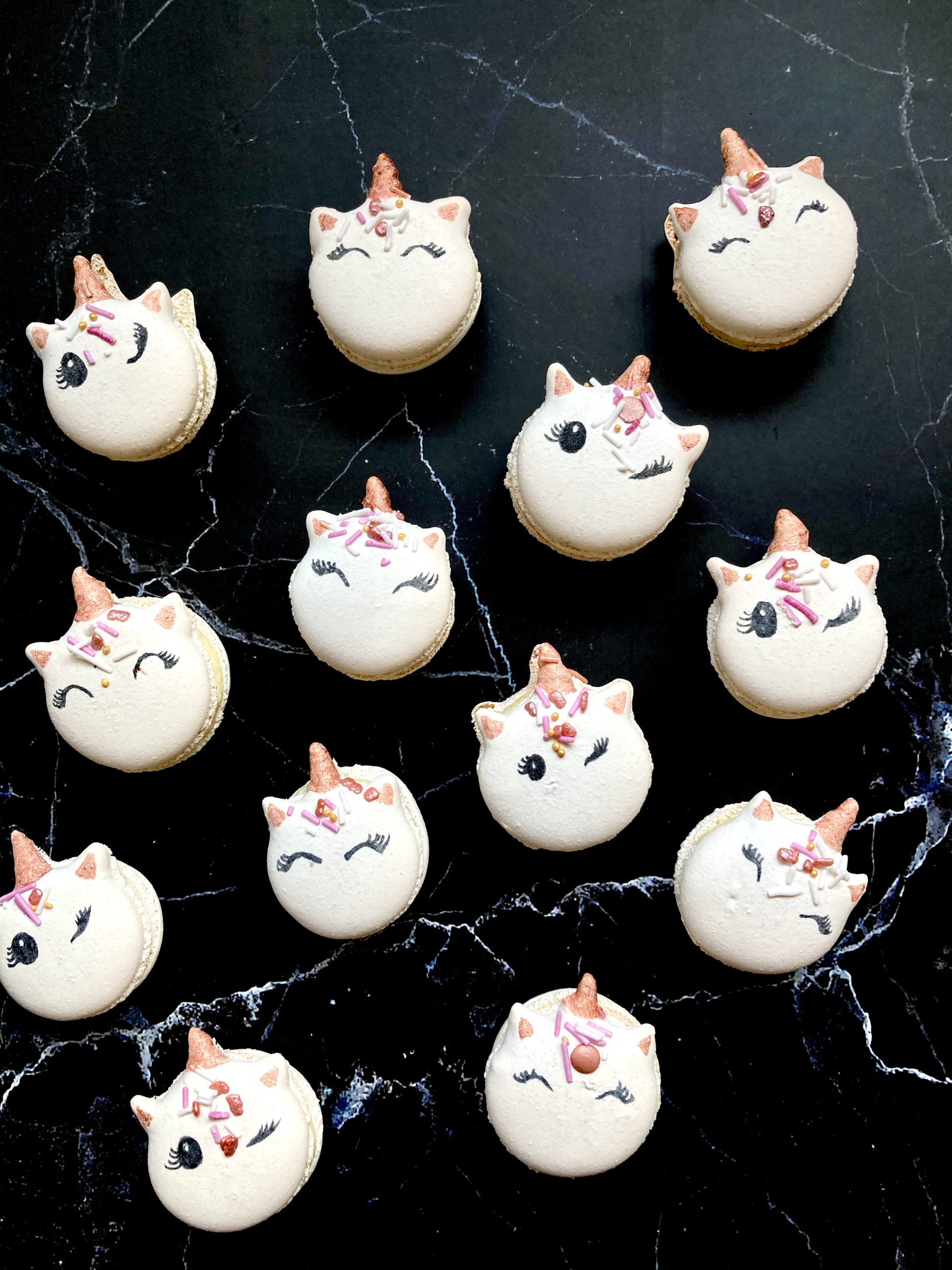 Gorgeous unicorn macarons with a pink vanilla filling.